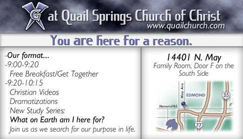 Copyright � 2004 Quail Springs Church of Christ 14401 N. May Avenue, Oklahoma City, OK 73134 Phone: 405.755.4790